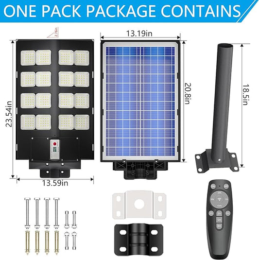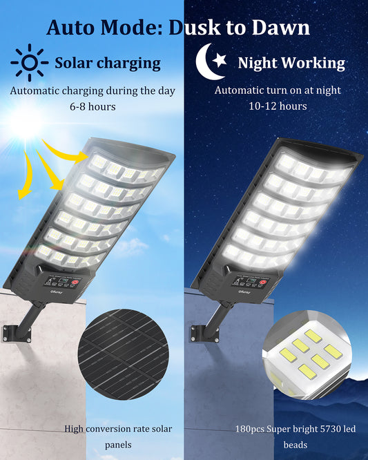 Ofuray 1800W Solar Street Light Outdoor, 258000LM Solar Street Light Parking Lot Lights Commercial Dusk to Dawn, 6500k IP67 Waterproof Led with Remote Control Motion for Street,Court,Tree