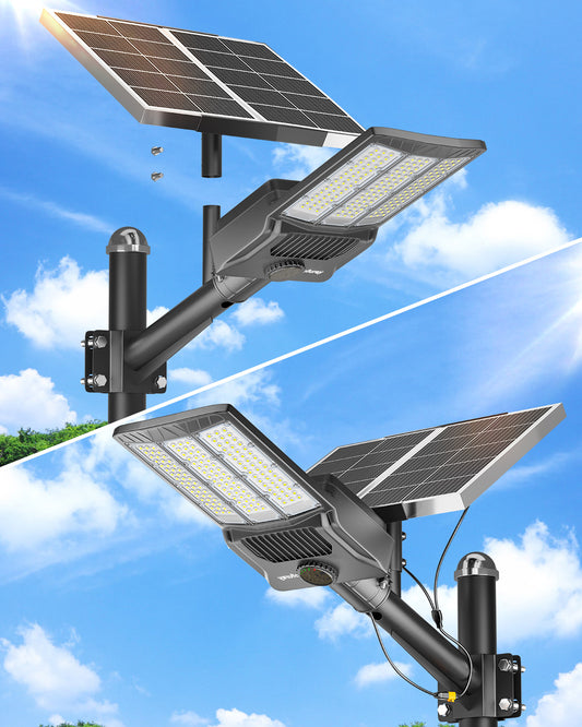 Ofuray 800W Solar Street Light Outdoor Waterproof, 80000LMSolar Parking Lot Lights-Commercial Dusk to Dawn, IP67 6500k LED Street Light with Remote Control Motion Sensor for Garage, Yard, Barn 1P