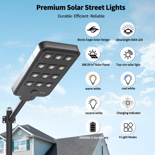 Ofuray Of-15000W Solar Street Lights Outdoor – Super Bright 150 LED, Lights up 3,200 sq.ft with Motion Sensor, 36Ah Power, IP67 Dusk to Dawn Security Commercial Lighting for Court, Parking Lot