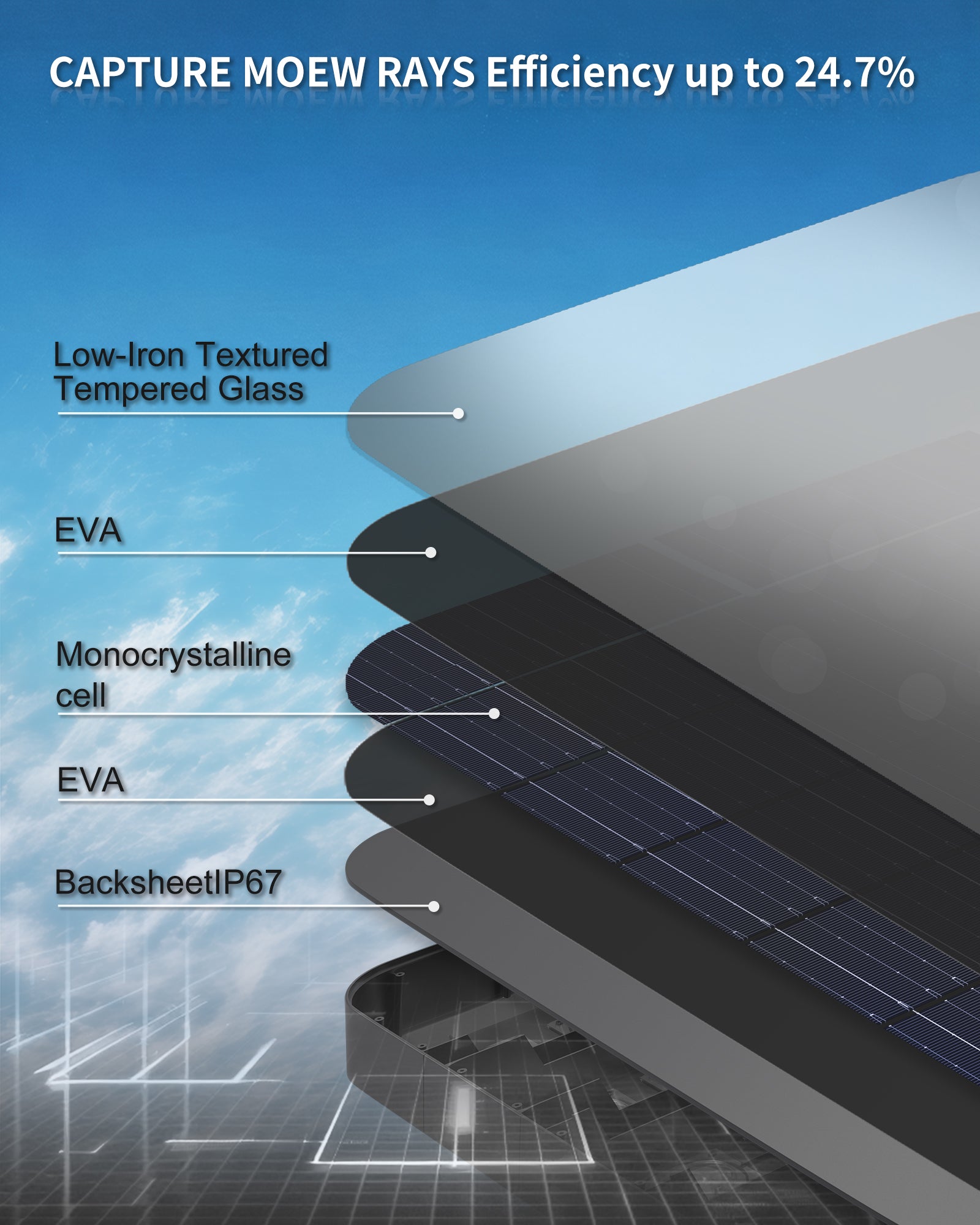 - 25.5% Efficiency & 5-Level Indicator:Our Solar panel adopts top-con solar technology captures up to 25.5% sunlight conversion. Performs better in low-light conditions and maintains stability under high temperatures with a lower temperature coefficient. Less than 1% degradation in the first year, with a lifespan up to 30 years, ensuring light stays bright in all seasons.5-Level Solar Charging Indicator lets you easily check status — all lights on means fully charged for maximum dusk-to-dawn performance