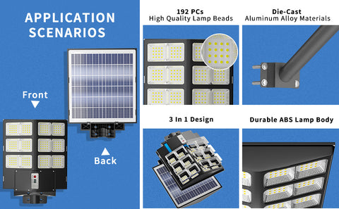 1. Before using the street light for the first time, it needs to be charged for 6-8 hours on sunny days. But we recommend charging more time. If the battery is not fully charged, it will affect the brightness and reduce the brightness.